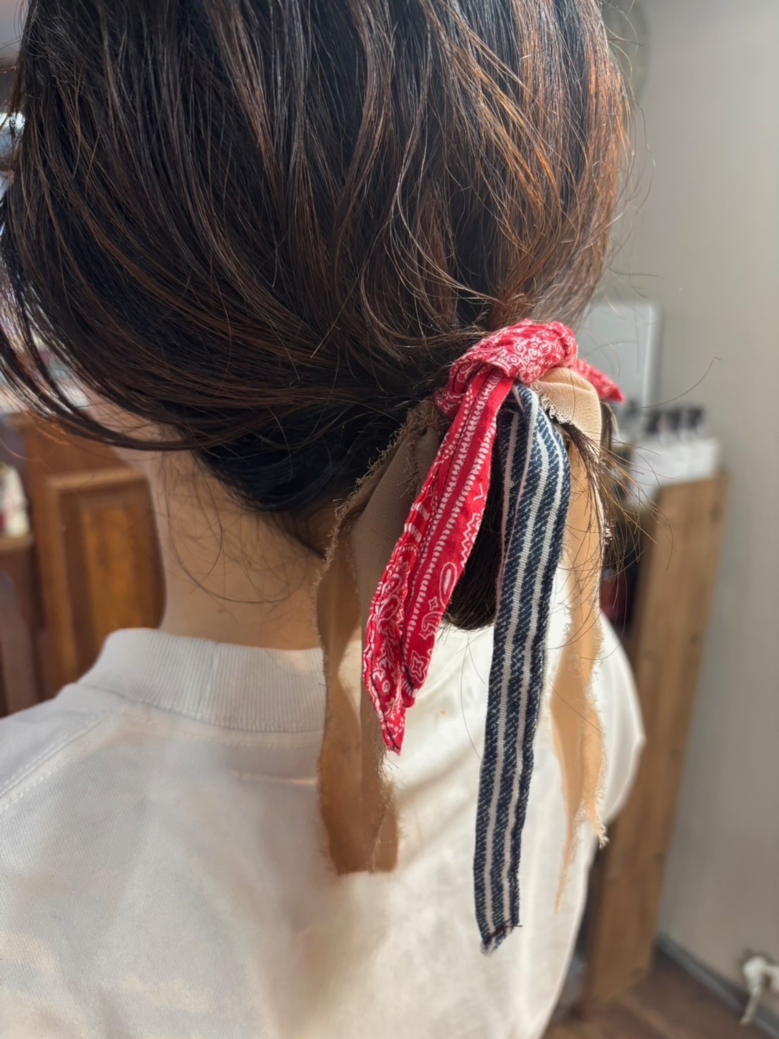 岡山県井原市産デニムや小紋工房さんの可愛いペイズリー柄の国産生地や国産ダブルガーゼのヒッコリー、国産ゴムを使用したフリンジヘアゴムです♨
