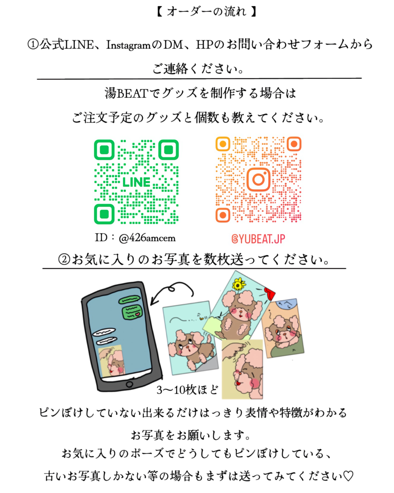 ※納品したイラスト画像は湯BEAT以外のグッズ製作サイトやカメラ屋さん、ご自宅で印刷やグッズ製作など商用利用以外は自由にご使用いただけます。